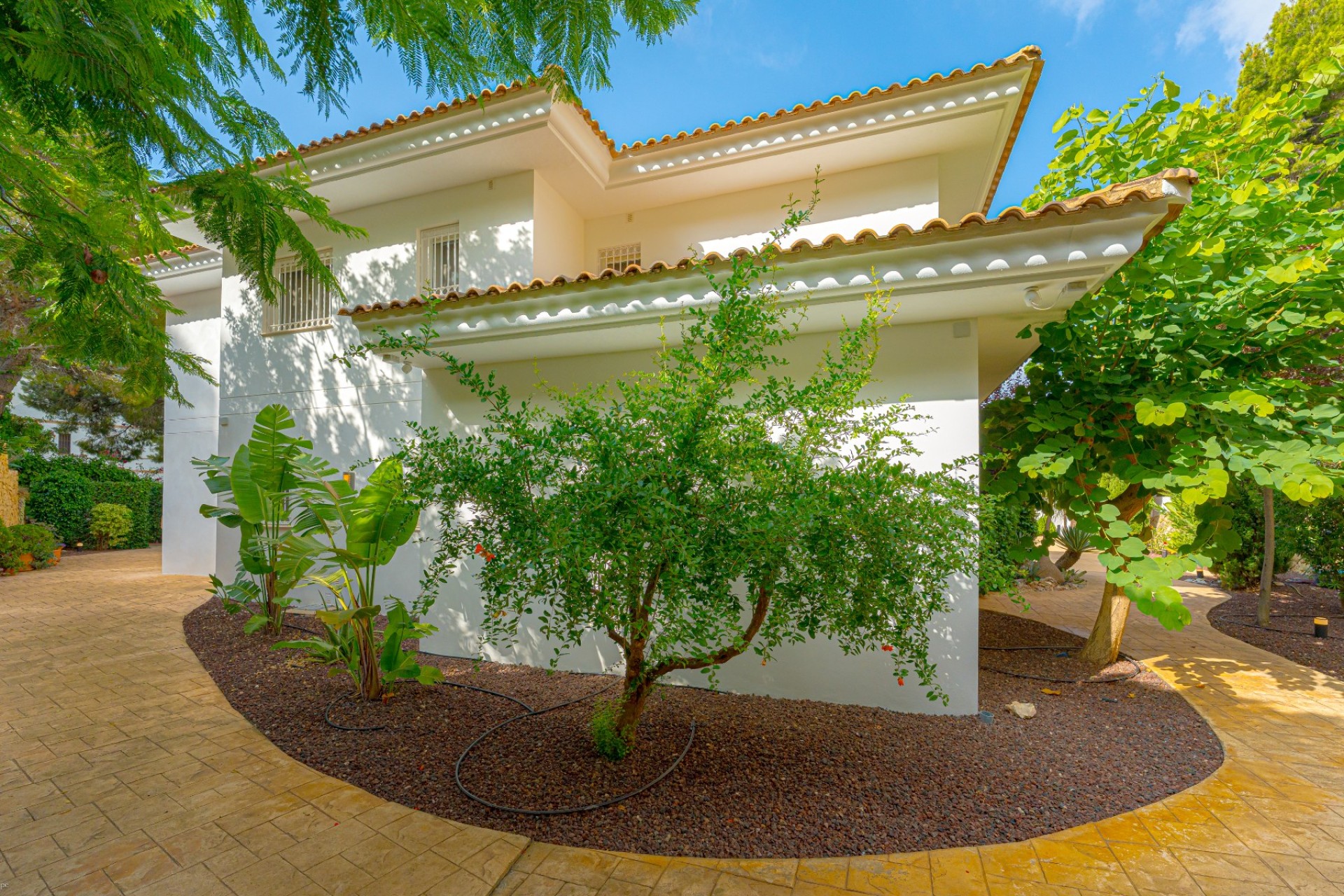 Het huis past harmonieus in een professioneel aangelegde tuin, waar de baai van Altea en de natuurlijke omgeving van de bergen samensmelten tot een lichte en serene omgeving, bezaaid met ruimtes die zijn ontworpen voor zowel ontspanning als vrije tijd.